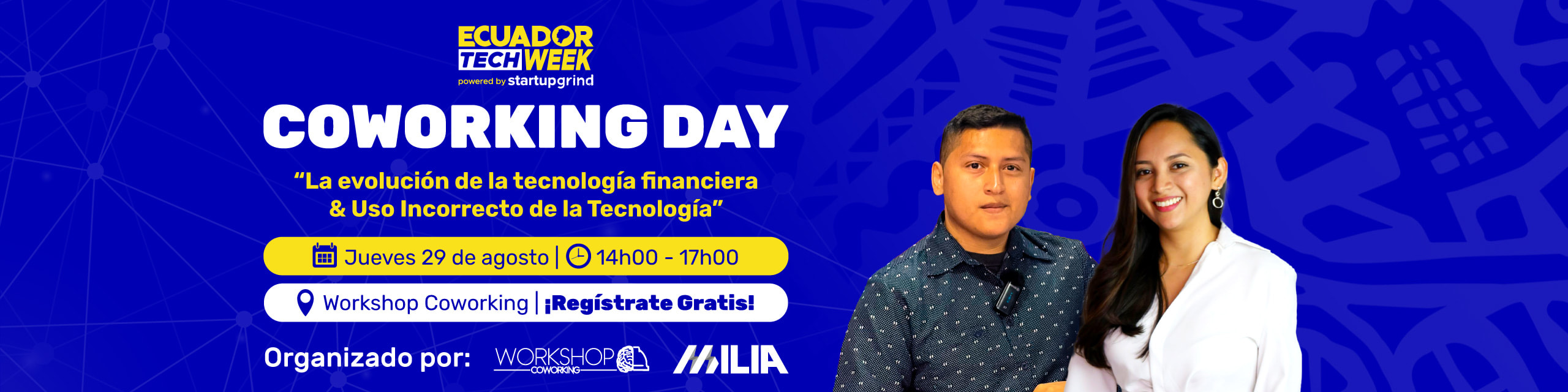 💻 Coworking Day es una iniciativa de Ecuador Tech Week junto a Workshop Coworking e impulsada por Milia, para conectar con colegas del ecosistema de tecnología, innovación y emprendimiento del país, compartir ideas, aprender de expertos invitados cada semana y enriquecerse de un ambiente de trabajo colaborativo.⚡