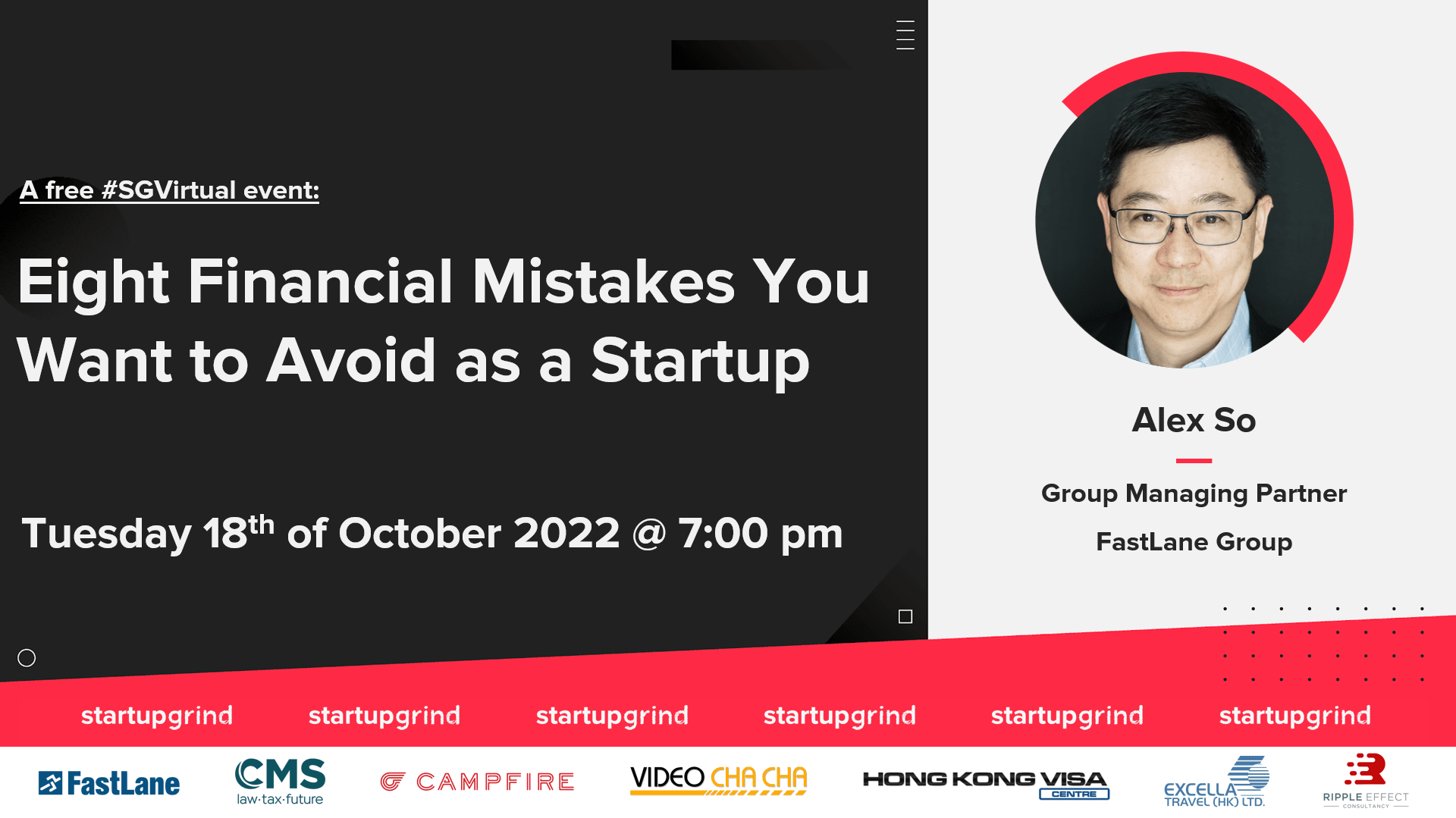 We are proud to have Alex So, Group Managing Partner FastLane Group, on stage to help us avoid common financial mistakes.