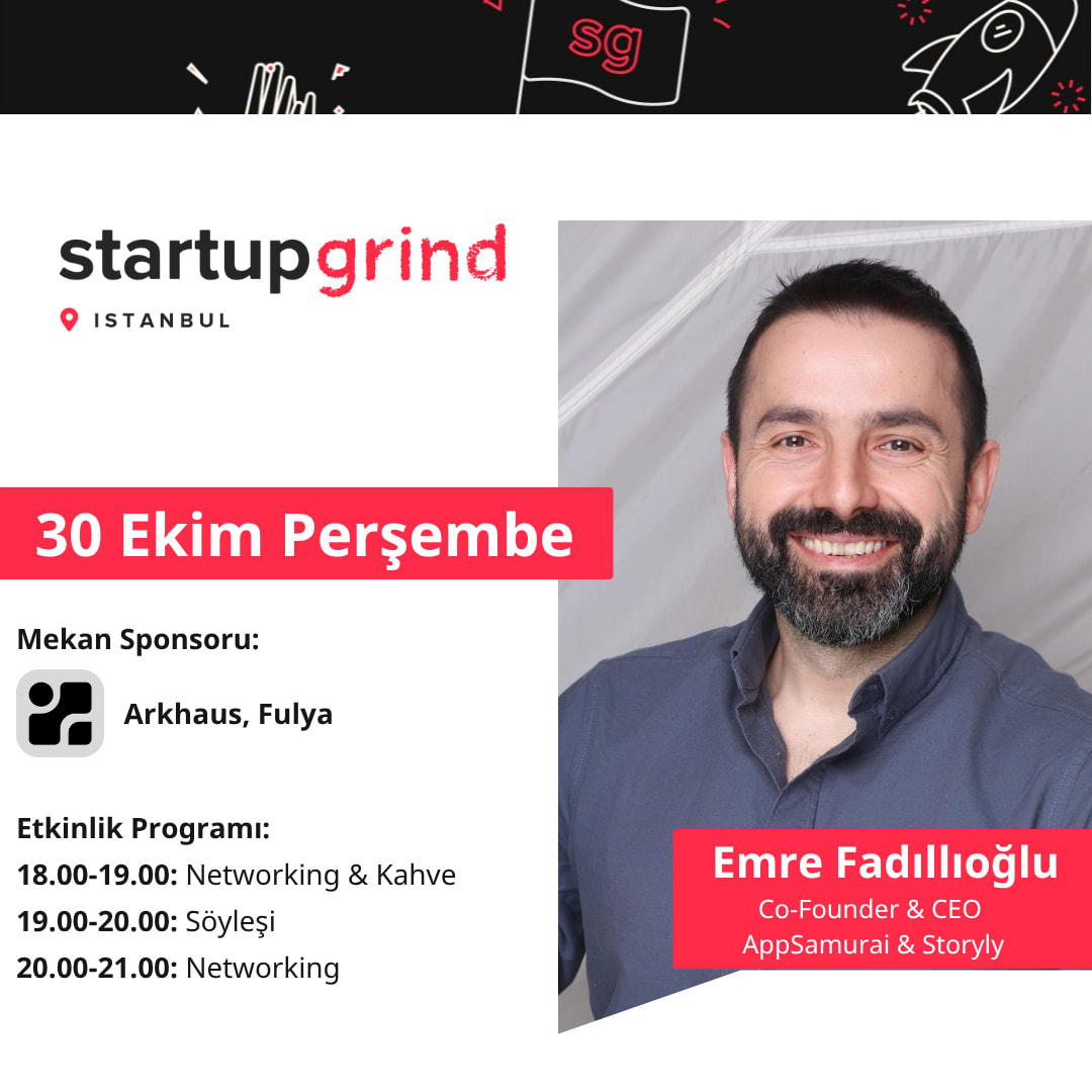 Yeni dönemin ilk etkinliğinde Startup Grind İstanbul sahnesinde, seri girişimci, AppSamurai ve Storyly'in kurucu ortağı ve CEO'su Emre Fadıllıoğlu bizimle olacak.