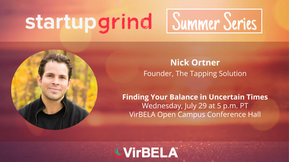 This week’s Startup Grind Summer Series event features Nick Ortner, Founder of The Tapping Solution. Join us as we explore Nick’s startup story and mission to bring into the mainstream a simple, effective, natural healing method known as Emotional Freedom Techniques (EFT) or “Tapping.” Tapping is a healing modality that combines ancient Chinese acupressure and modern psychology.